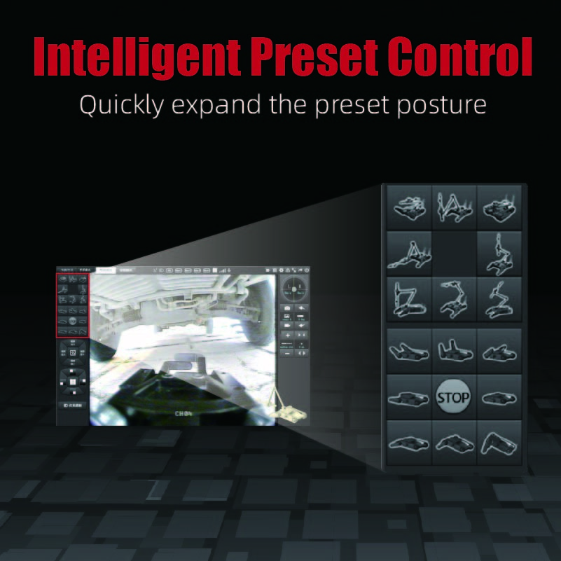 Благодаря функции «Интеллектуальное управление предустановленной позой для общих задач» робот может «автоматически достигать предустановленной позиции одним щелчком мыши» в соответствии с потребностями пользователя. Эта функция значительно сокращает объем ручных операций, необходимых на месте, служа эффективным помощником для операторов на передовой и повышая надежность и безопасность задач по обезвреживанию бомб.