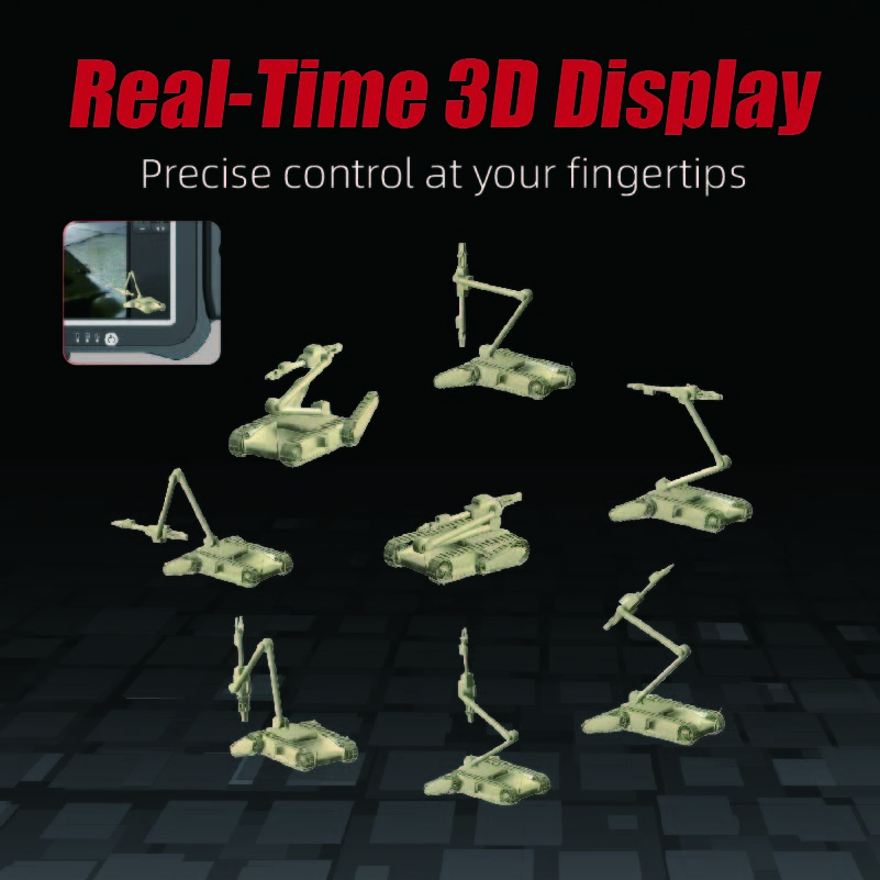 Поскольку роботы для обезвреживания бомб часто работают вне зоны видимости во время выполнения задач, информация о углах и пространственном положении суставов робота в реальном времени имеет решающее значение для операторов. REOD450 использует высокоскоростные каналы связи и передовые компьютерные технологии не только для достижения обратной связи в реальном времени с информацией о состоянии робота, но и для использования ведущей технологии 3D-виртуального отображения для удаленного отображения 3D-состояния робота в реальном времени. Это создает ощущение, что робот «под рукой», даже когда он «далеко», что позволяет выполнять более интуитивное управление.